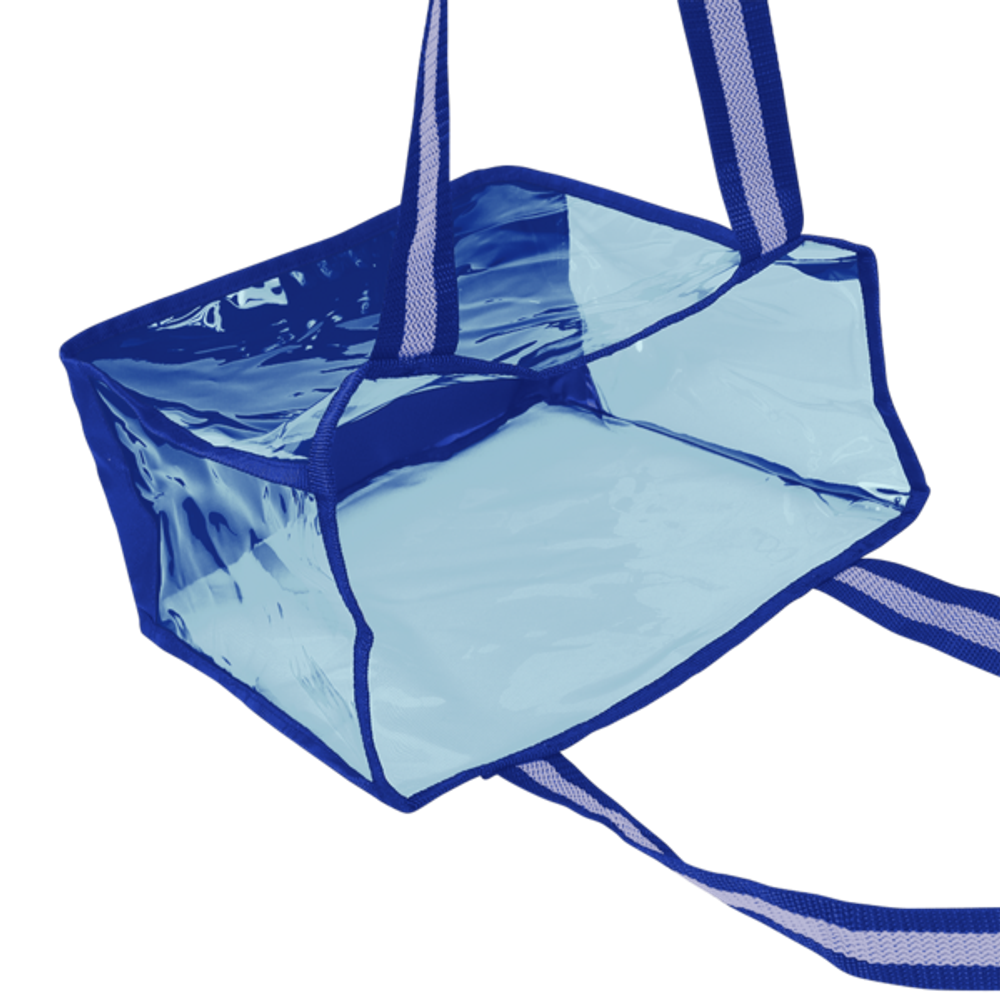 The University Park Clear Tote is stylish and practical. It features a clear body with a black contrast bottom, dual webbing 23 in carry handles in a two-color design, and a 5.25 in side gusset for extra space. Perfect for easy entry at sporting events, conferences, concerts, and festivals, this tote complies with clear bag safety protocols. The wipeable surface ensures easy cleaning, and being PVC-free, it offers a reliable solution for organizations and individuals. The tote is 12 x 12 x 6 which is perfect for most venues!