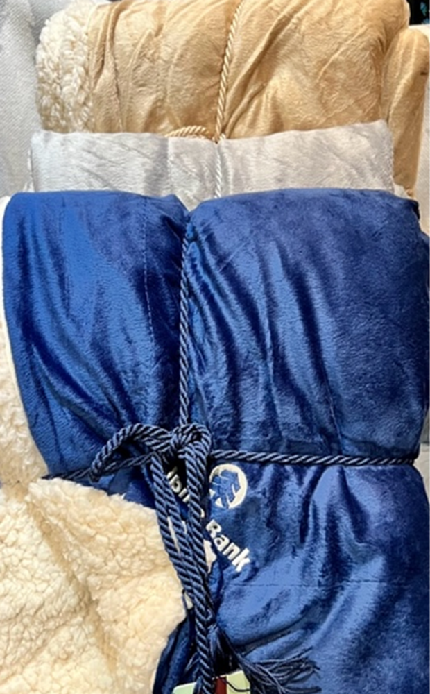When winter's chill hits the air, you can snuggle up under one these cozy 50" x 60" 100% polyester reversible self-hemmed throws . Ideal for bedrooms, living areas, dorms, sports events and cars.